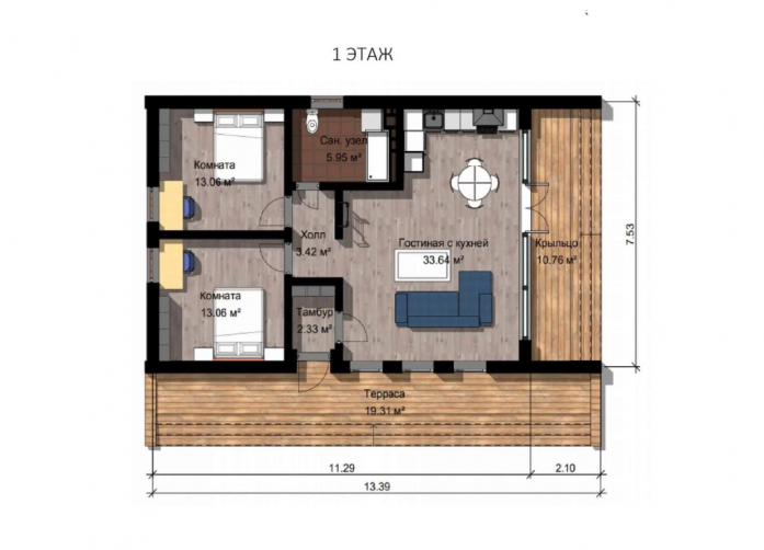 1. Небольшое количество внутренних перегородок. В стиле ценится наличие большого количества свободного пространства и естественное освещение.