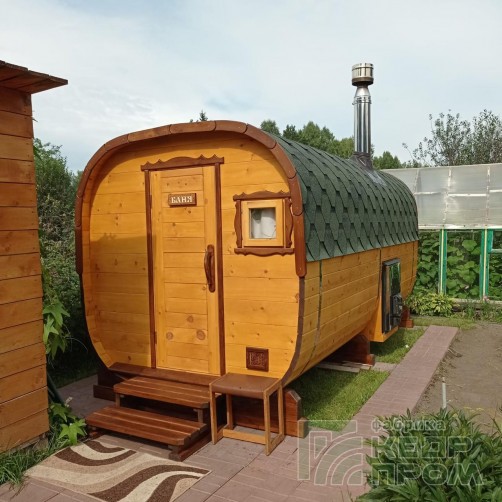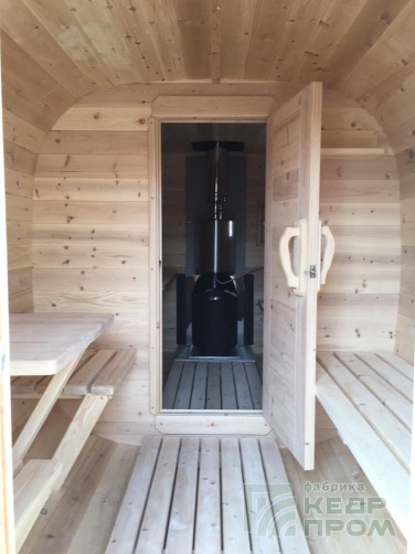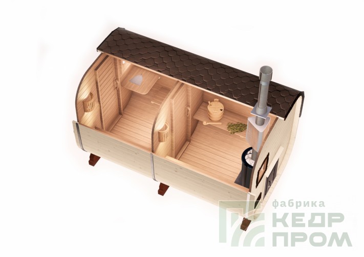 Квадратная 4-х метровая баня-бочка из древесины алтайского кедра, самая востребованная из всего ассортимента бань-бочек. Парная и моечная совмещенная 2м, комната отдыха 1,7м. Квадратная форма бочки более удобный вариант мобильных бань в отличие от классической круглой формы бочки, даёт увеличение внутреннего пространства бани-бочки.