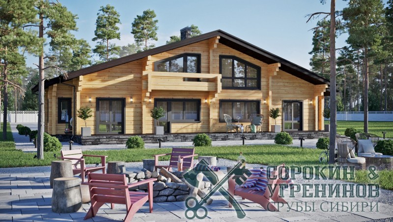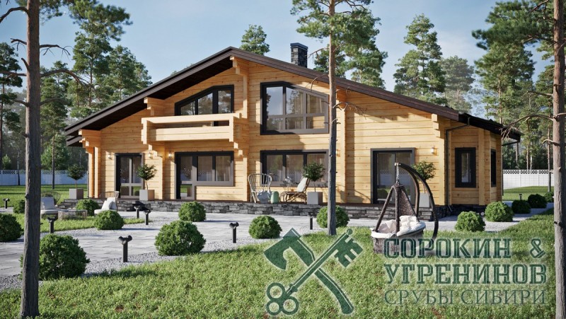 Индивидуальный проект жилого дома из лафета сечением 220х350мм, площадь дома 195м2. Размер сруба 9х19 метров. Дом в стиле шале, рубленый из лафета кедра, есть небольшой мансардный этаж с балконом. Планировка первого этажа дома: три комнаты, большая гостиная совмещена с кухней, прихожая, котельная и санузел, есть небольшая веранда. Дом был установлен в Московской области в городе Дубна в 2013 году.