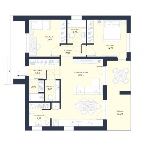 ■ Высота потолков - 3 метра