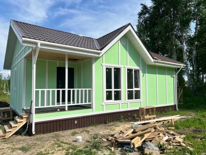 Цена указана с разводкой коммуникаций по дому. Фактическое подключение электричества и воды рассчитывается индивидуально. Внутри предчистовая отделка.