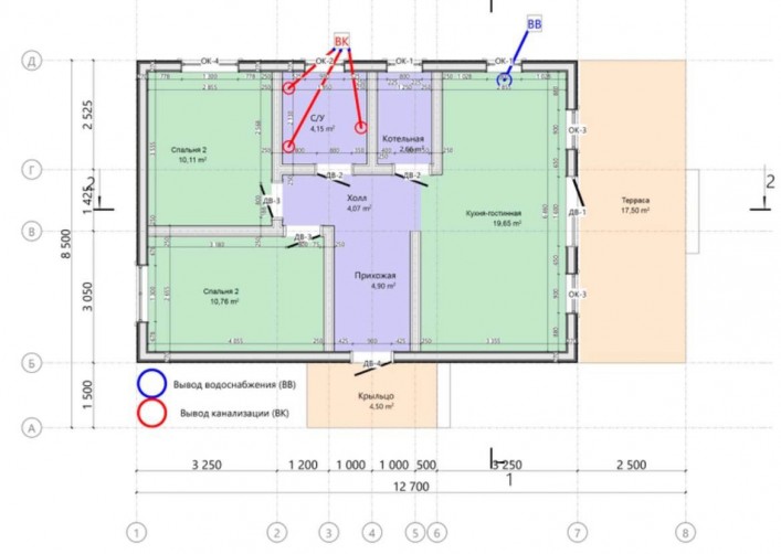Цена указана с разводкой коммуникаций по дому. Фактическое подключение электричества и воды рассчитывается индивидуально. Внутри предчистовая отделка.